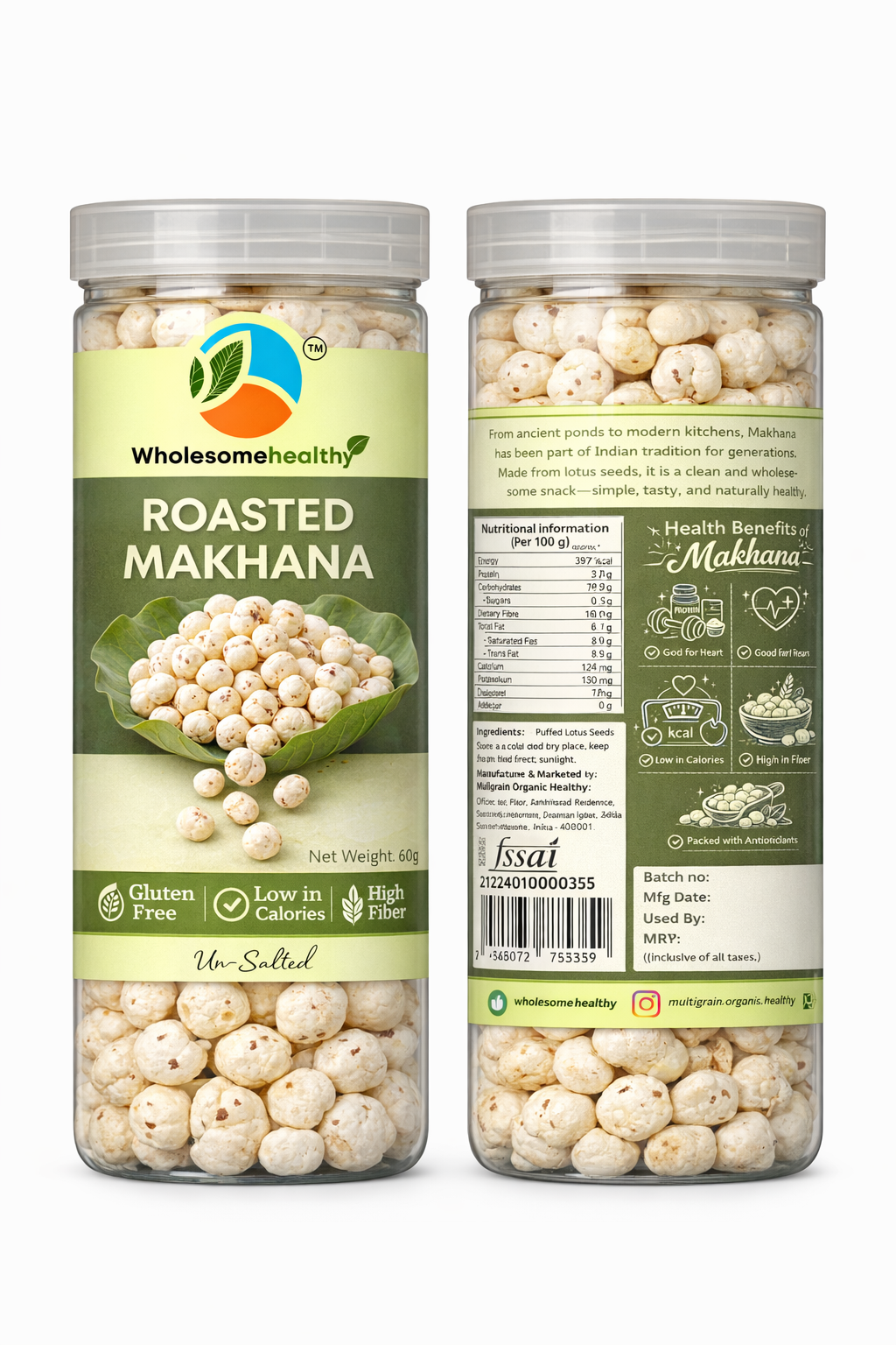 Our Roasted Makhana (Unsalted) is made from premium lotus seeds, gently roasted to give you a natural crunch and nutty flavour—without any added salt or seasoning.
